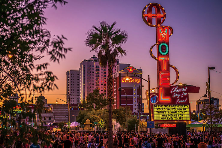 <르 레브>의 황홀경도 오래도록 기억에 남는다. 물 속에서, 물 위에서 끊임없이 펼쳐지는 고난도의 춤과 서커스는 ‘꿈같다’는 말로 밖에 설명할 수 없다. 공연장을 나와서도 관람 모드는 계속된다. 자세히 들여다보면, 라스베이거스 주요 호텔과 쇼핑몰 곳곳에 갤러리를 방불케 하는 미술품이 자리하고 있는 것. 하이엔드 쇼핑몰 더 숍스 앳 크리스털스(The Shops at Crystals)에는 빛의 예술가 제임스 터렐의 작품이 설치돼 있고, MGM 그룹이 운영하는 아리아(Aria) 호텔의 아트 컬렉션은 제니 홀저, 헨리 무어, 프랭크 스텔라, 피터 베그너 등 그야말로 세계적 작가들을 아우른다. 설치미술가 우고 론디노네가 라스베이거스 인근 사막 위에 펼쳐놓은 형형색색의 거대한 돌탑 ‘세븐 매직 마운틴스(Seven Magic Mountains)’ 앞에서 인증 샷을 찍는 것도 잊지 말길!