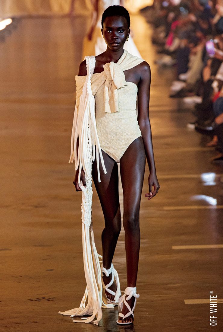 지루한 일상의 쉼표가 돼줄 바캉스 룩 트렌드를 소개할게요. 매년 바캉스 룩은 화사한 컬러와 식물 패턴이 주를 이루면서 여행을 향한 설렘을 고조시키곤 했죠. 이번 시즌에는 전과 다르게 한층 과감하고 모던한 분위기의 바캉스 룩이 등장해 눈길을 끌었답니다. 휴양지의 푸른 바다가 떠오르는 피시넷, 메시, 시스루같이 속이 훤히 보이는 소재가 메인으로 떠오르기도 했고요. 특히 살바토레 페라가모와 디올의 컬렉션에 등장한 피시넷 드레스는 스윔수트와 레이어드해 다양한 연출이 가능하죠. 베이지 컬러의 로프와 피시넷을 고루 활용한 오프화이트™ 룩도 눈여겨볼 만하답니다.ON-TREND