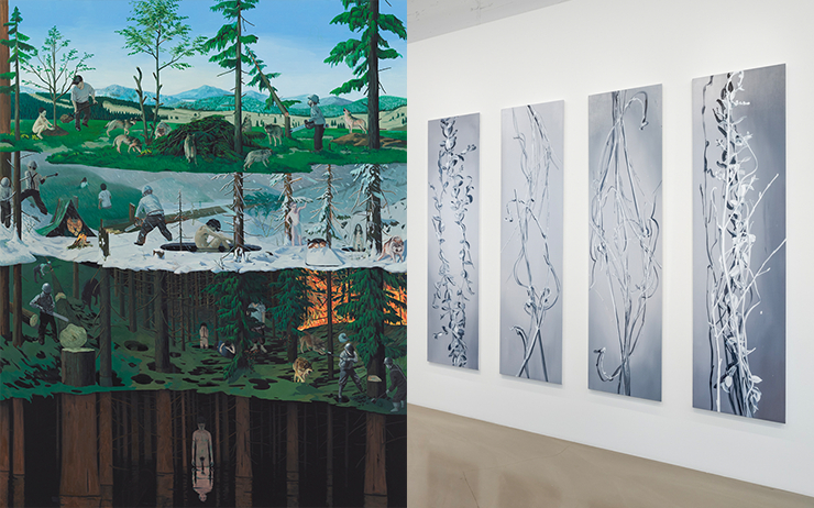 개인적으로 가장 흥미로운 작품은 배준현 작가의 ‘discoverer, 모험가’, ‘explorer, 탐험가’, ‘finder, 발굴가’ 연작. <내셔널지오그래픽> 등에 실린 산 사진을 오려서 허구적인 풍경을 만들어낸 콜라주 작품을 대형 프린트로 복제해 벽면 전체에 벽지처럼 발랐다. 작가가 상정한 유토피아는 처음부터 허구이며 이 허구가 대형 복제된 풍경은 실재와 허구에 대한 흥미로운 혼선을 선사한다. 지인의 죽음을 경험한 곽이브 작가는 한석봉의 시구가 적힌 보급형 병풍과 상여를 형상화한 패브릭 설치 작품으로 인생의 유한함을 말한다. ‘똥파리’ ‘우매’ 같은 제목을 지닌 황수연 작가의 종이 조각작품은 인간의 손, 뼈 같은 구체적인 이미지가 점차 추상적으로 변해가는 니콜라스 펠처의 영상 작품 가운데 엉뚱하게 놓여있다. 생명이 깃들어 있는 상상의 동물 같은 자태로. 아티스트로서 커리어의 빛나는 시작점에 놓인 8명의 젊은 작가들은 개성 넘치는 작품들 속에 시간성에 대한 의미를 겹겹이 묻어 놓았다.