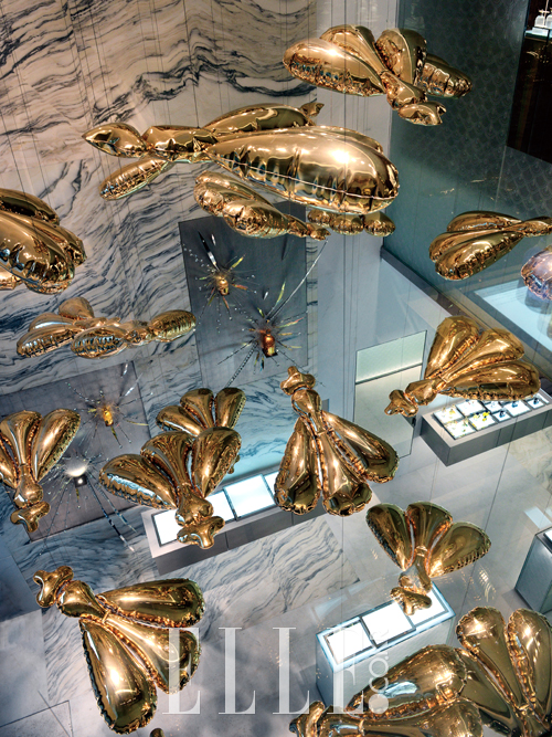 ‘미러홀(Hall aux Miroirs)’이라는 이름의 거울 장식 갤러리. 이중으로 제작된 거울 안쪽에는 피터 마리노의 작품 ‘인피니티 보틀(Infinity Bottle)’이 전시되어 있는데 ‘꿀벌’ 모티프의 향수병 마개에서 영감을 받은 것이다.