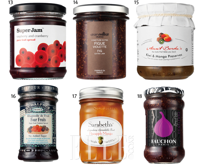 16 일단 시선을 잡아 끄는 건 빈티지하면서도 고급스러운 보틀. 게다가 각종 인공 첨가물과 방부제를 뺀 착한 잼이라니 눈길을 주지 않을 수 없다. 딸기, 산딸기, 블랙 라즈베리, 체리 등 유기농 과일과 천연 과즙을 혼합해 만들었다. 프랑스산, 6천원, 샹달프 by SSG 푸드 마켓.
