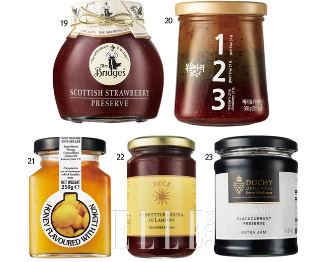19 캔디로 유명하지만 마멀레이드부터 초콜릿까지 다양한 제품군을 갖춘 미세스 브리지. 스트로베리 프리저브는 젤리 같다. 알갱이가 덩어리져 있기보다 잼 전체가 응고된 모양으로 ‘어린이 입맛’을 가진 사람들이 좋아할 듯하다. 스코틀랜드산, 7천9백원, 미세스 브릿지.