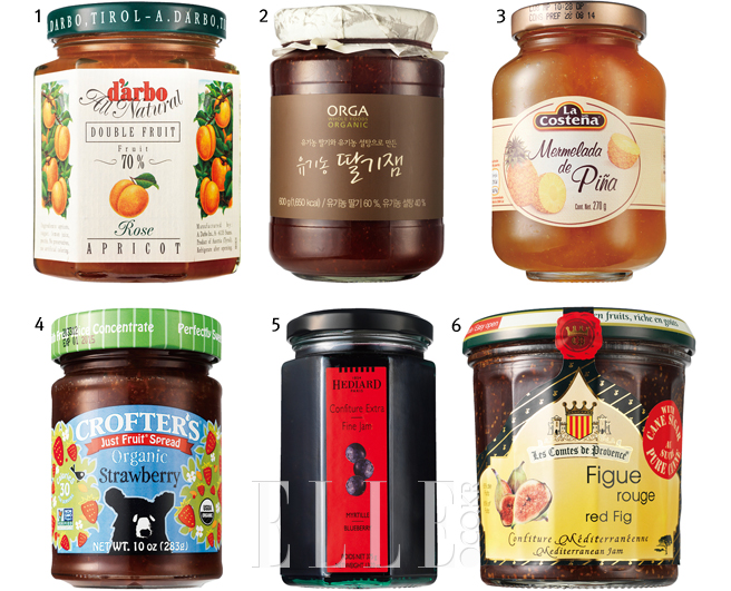 1 빈티지한 디자인 용기가 눈길을 끈다. 살구가 무려 70% 이상 함유돼 단맛보다 특유의 새콤한 맛이 그대로 전해지는 것이 특징. 덩어리가 뭉치지 않아 마치 퓌레(Puree) 같다. 오스트리아산, 6천5백원, 다보 로즈 by 스위트 스페이스.
