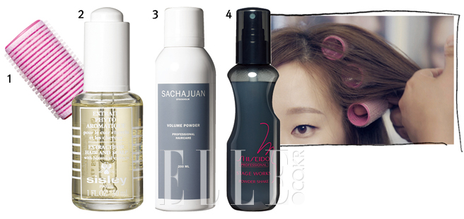 머리숱이 풍성해 보이려면 모근의 힘을 키워 모발이 아래로 축 처지지 않게 해야 한다. 이럴 때 사용하면 좋은 제품이 바로 볼륨 파우더. 여기에 그루프만 하나 더 있으면 금상첨화다. 스프레이 타입의 볼륨 파우더를 그루프에 분사한 후(두피에 직접 닿지 않도록) 말아두면 머리카락에 인공호흡을 한 듯 풍성한 볼륨이 만들어진다. 그리고 모발 뿌리 쪽을 손가락으로 살짝 꼬집듯 들어올려 매만지면 뿌리 부분에 좀 더 자연스러운 볼륨감을 줄 수 있다.