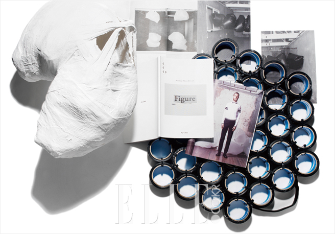‘형태’란 무엇인가. 사물은 오롯이 하나일 때 혹은 여러 개일 때 각각 다른 형태를 갖는다. 이 해체주의적 발상은 시각예술가 장성은과의 컬래버레이션 작품(가방 두 개를 붙여 만든 석고상, 테이프를 빼곡하게 붙인 가방 등)을 통해 본격적으로 시작된다. 단순히 작품을 만드는 것을 넘어 컬렉션의 공간과 룩, 오브젝트의 삼각관계를 살피며 무드를 연결했다. 최철용