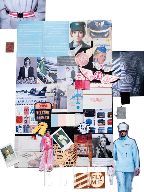 늘 생각했다. 50~60년대에 비행을 즐기던 이들의 모습이 지금보다 훨씬 세련됐음을! 실제로 승무원의 유니폼이 비행기 인테리어보다 감각적이고 럭셔리했고, 항공 배지처럼 작은 액세서리조차 우아했다. 빈티지 사진 속의 그녀들은 우리가 기획한 앤디앤뎁 항공사에서 모던하게 되살아났다. 김석원 & 윤원정