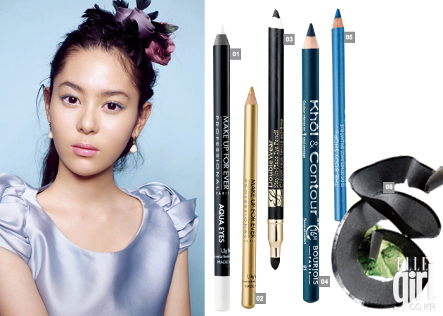 1,6 강력한 워터프루프와 롱래스팅 효과를 지닌 소프트한 질감의 아이펜슬, 아쿠아 아이즈 14L, 17L호. 1.2g. 각각 2만6천원. 메이크업 포에버. 2 콜 펜슬 7K호. 1.14g. 가격미정. 메이크업 포에버. 3 깔끔한 아이라인과 진한 스모키 아이를 모두 즐길 수 있는 더블 웨어 스테이-인-플레이스 아이펜슬 01호. 1.2g. 2만8천원. 에스티로더 4 콜 에 콩뚜르 75, 81호. 1.14g. 각각 1만7천원. 부르조아. 5 메탈릭 아이 디파이너 쉐이드 10호, 13호. 1.25g. 각각 1만3천원. 더바디샵.