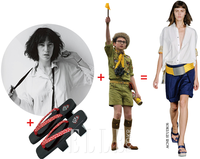 패티 스미스 + 일본 전통 슈즈 + 보이스카우트 유니폼 = 뉴 워킹 룩
