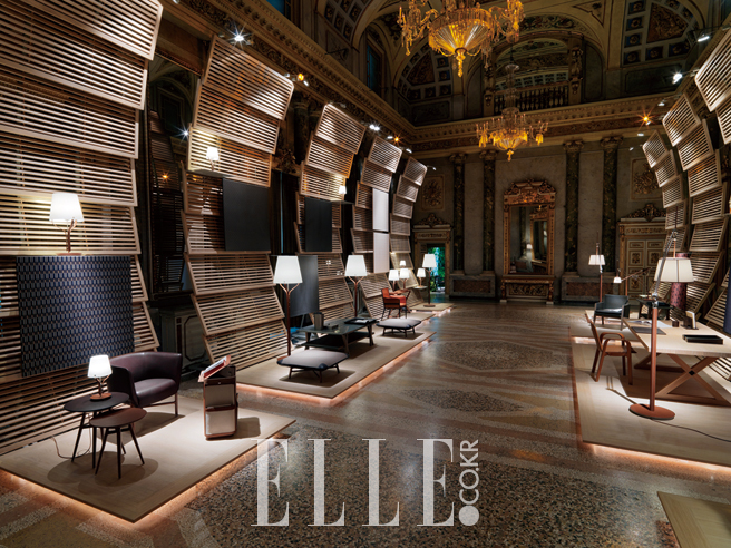 밀란 시내 팔라조 세르벨로니에서 열린 에르메스 메종의 조명 가구 론칭 전시. 한때 나폴레옹과 조세핀이 머물기도 했다는 유서 깊은 1700년대 네오클래식 스타일의 실내에 펼쳐진 모던한 전시물이 예사롭지 않다.