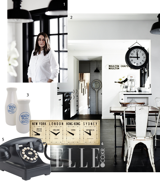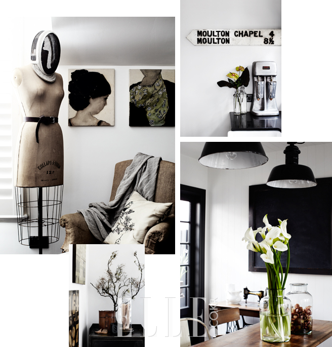 꿋꿋하게 단색으로 일관한 모노크롬 공간은 컬러의 부재로 상상력이 부족하다는 평가를 받을 수 있다. 새하얀 빛이 호기롭게 구석구석을 비추는 린 카터 테일러(Leanne Carter-Taylor)의 집과는 거리가 먼 얘기지만. 호주 시드니, 서부 지역 로젤(Rozelle)에서 앤티크 가구 숍 ‘퀸트에센셜 덕에그블루(Quintessential DuckEggBlue)’를 운영 중인 그녀는 남편 그리고 네 마리의 반려견과 함께 지내는 숍 인근의 낡은 ‘코티지’를 장장 10년에 걸쳐 뜯어고쳤다. 블랙 앤 화이트의 인더스트리얼 가구가 집 전체를 지배하는 가운데 부부의 공동 심미안이 투영된 앤티크 소품이 요소요소 반영된 게 이 집의 관전 포인트. “‘빈티지’ 하면 잡동사니나 폐품을 산만하게 늘어놓는 줄 알지만 그건 잘못된 생각이에요. 전통에 대한 애정을 드러내되 분위기가 어수선하지 않게 그와 대조를 이루는 깨끗한 라인의 아이템을 배치해요. 예를 들어 빛과 어둠, 벼룩시장에서 발견한 낡은 소품과 세련된 톤의 인더스트리얼 가구가 한 공간에 공존할 수 있게 말이죠.” 린은 몇 주에 걸쳐 성급하게 집안을 꾸미는 대신 긴 시간 동안 진화하는 하우스 스타일을 선택했다. 그리고 이 장기 프로젝트에서 중요한 건 어떤 유혹에도 흔들리지 않고 처음 결정한 톤과 형태의 가구를 끈기 있게 고르고 사는 일. 아이템 하나가 전체 분위기를 흐릴 수도 있기 때문이다. “화이트, 블랙과 같은 뉴트럴 톤을 좋아해요. 담백한 컬러의 가구를 배경색처럼 깐 뒤에 성질이 다른 빈티지 월넛 프렌치 비스트로 테이블, 천연 우드 소재의 클럽 체어, 가죽 벤치를 레이어드해 균형을 맞추는 편이죠. 각기 다른 매력의 가구가 시너지 효과를 내는 모습이 흥미롭거든요.