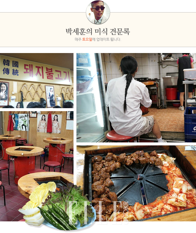 보통 돼지 목살 부위를 초벌구이 해서 주는데, 초벌구이 시 사장님이 벌이는 춤 사위가 이 집의 볼거리다. 초벌구이 뒤엔 오픈 전부터 달궈 둔 특수제작(나의 추측이다!)된 불판에 직접 재벌구이해 먹으면 된다. 37일가량 숙성시킨, 발효(?) 수준으로 양념이 밴 돼지고기는 소고기만큼 풍부한 육즙을 머금고 있고 부드러우면서 고소하다. 한국의 돼지고기 중 매콤하면서도 촉촉하고, 그러면서도 고소한 유일무이한 맛! 젓갈이 배제된, 입에서만 맴도는 알싸한 맛의 김치는 청양고추를 이용해 담근다. 찹쌀이 들어간 고추장은 사장님이 직접 담근다고 했다. 별다른 식사 메뉴는 없고 공깃밥을 주문하면 배춧국이 따라 나온다.