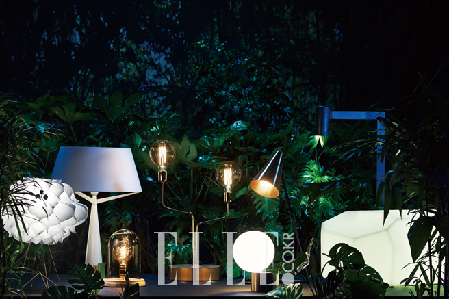 (왼쪽부터 오른쪽으로) 통기성과 방수성을 가진 특수섬유, 타이벡 소재의 테이블 램프는 22만원, Artecnica by Rooming. 커다란 나무 모양의 화이트 컬러 테이블 램프는 가격 미정, THEedit. 유리 돔 안에 들어 있는 전구 형태의 테이블 램프는 21만원, The Second Moon. 동물의 뿔을 형상화한 브라스 소재의 테이블 램프는 25만원, The Second Moon. 풍선을 닮은 듯한 테이블 램프는 가격 미정, THEedit. 원형 뿔 형태의 브라스 소재 램프는 가격 미정, Watts. 모던한 블랙 스틸 소재의 플로어 램프는 가격 미정, THEedit. 그 자체로 커다란 돌의 형상인 ‘미티오’ 아웃도어 램프는 가격 미정, Serralunga by THEedit.