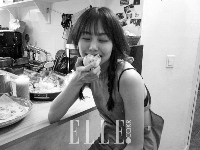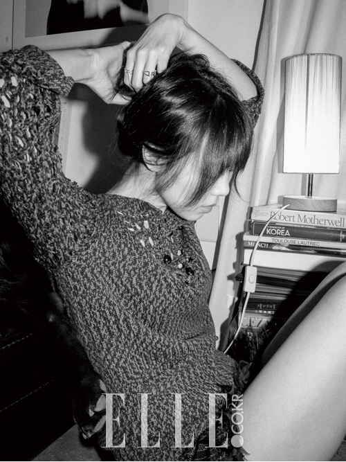 “가끔 그런 질문을 받을 때마다 뭔가 생각해 내려고 해도 특별히 얘기할 만한 게 없어요.” 어쩌면 다행이었다. “김민희라면 매일같이 특별한 일상을 보낼 것 같아요”라는 식상한 질문을 던지는 사람이 비단 나만은 아니었을 테니까. “여느 사람들과 똑같죠. 친구들 만나고, 그냥 내 시간을 보내고.” 그렇다면 오히려 다시 배우로서의 영역으로 돌아왔을 때 느낄 수 있는 어떤 특별함이란 게 있지 않을까? “10년 넘게 해왔던 일이기 때문인지 몰라도 역시 일상 같아요. 물론 일을 시작할 때, 새로운 사람을 만날 때 그리고 완성된 작품이 공개될 때마다 느껴지는 긴장감 정도는 있죠.” 사실 그때 특별한 일상을 보내고 있었던 건 김민희가 아니라 바로 나 자신이었을지도 모른다. 내 질문에 주의를 기울이면서도 가끔씩 무언가를 입에 물고 씹고 있는 자신의 강아지를 보며 “그건 안돼’라고 상냥하게 말하는 김민희와 마주보고 있다는 것 말이다. 마치 김민희의 집에 초대받은 손님이 된 듯한 기분이랄까. 사실 여긴 포토그래퍼의 집이다. 개인적으론 지금까지 진행해 온 화보 촬영 중 가장 야생적(?)이면서도 목가적(?)인 경험을 선사한 현장이기도 하다. 처음으로 대면한 두 마리의 개, 그러니까 포토그래퍼가 키우던 ‘턱스’와 김민희가 현장에 데려온 시바견 ‘탄’이 장난을 치며 사방을 돌아다녔지만 대부분의 스태프들은 지나친 상황을 제외하곤 두 견공의 행동을 제지하지 않았다. 그만큼 현장 분위기는 자유로웠고, 자연스러웠다. 김민희는 마치 절친한 친구 집에 놀러 온 것처럼 그 안에 머물렀다.
