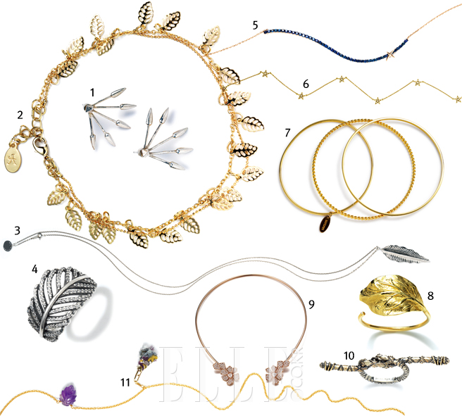 8 내추럴한 나뭇잎 모티프의 골드 링은 25만8천원, 디엘핀.