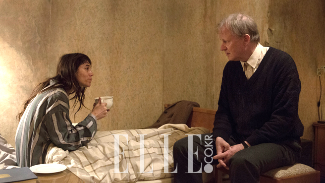 어쩌면 그건 이 영화가 표현하는 강도가 시작부터 만만치 않기 때문일 것 같다. 유아기 시절부터 섹스에 대한 관심이 남달랐던 소녀가 직접적인 섹스를 체험하기까지의 서사를 목격하기까진 긴 시간이 필요하지 않다. 빠른 시간 안에 자극의 강도를 훅 끌어올린다. 초반부터 강한 훅을 날린다. 그만큼 감각이 얼얼해진다. 자극의 역치가 단번에 상쇄되니 실무율에 가까운 자극적 담담함이 유지되는 것 같다. 한편으론 믿을 수 없는 섹스 탐닉기를 고백하는 조의 맞은 편에 앉아있는 남자 샐리그먼(스텔란 스카스가드)의 태도 역시 영화의 선정성을 중화시킨다. 조의 파격적인 경험담을 듣고 끌어내는 청자로서의 역할을 하는 샐리그먼은 시종일관 다양한 지식을 동원해서 그녀의 경험에 거창한 의미를 부여한다. 샐리그먼은 극 속에서 조의 이야기를 들어주는 입장으로 자리한 캐릭터이지만 동시에 객석에 앉은 관객의 대리인이기도 하다. 조의 고백보다도 샐리그먼의 반응이 관객의 반응에 영향력을 행사할 가능성이 크다는 말이다. 그만큼 일관성 있게 유지되는 샐리그먼의 이성적인 태도는 관객의 감각을 제한하는 방향으로서 영향을 미칠 가능성이 크다.