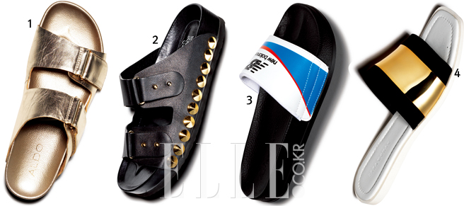 1 스트리트 위에서 빛을 발하는 메탈릭 스트랩 슬라이드는 9만8천원, 알도.