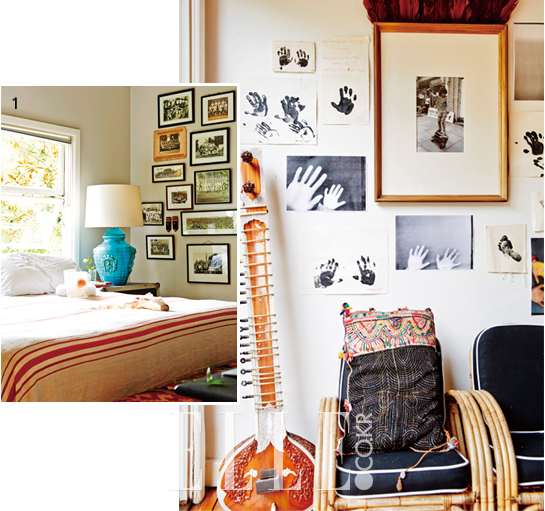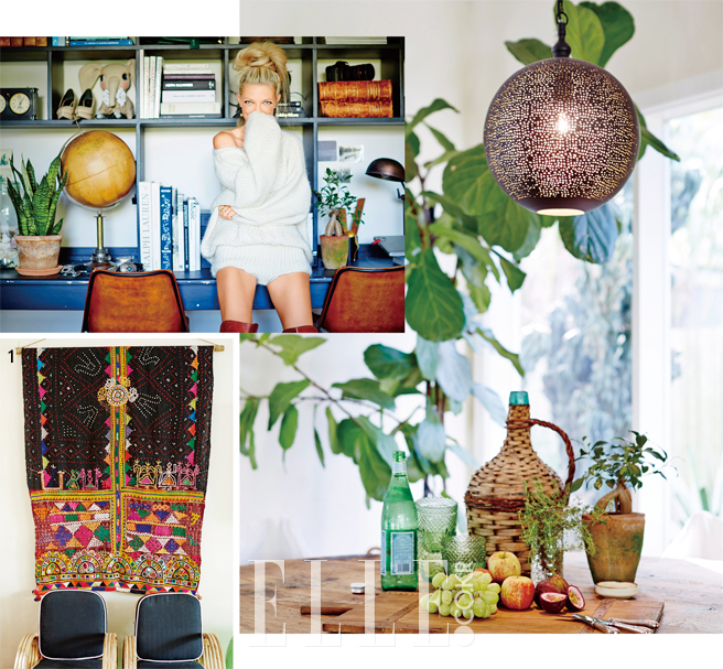 또 이 가족의 유유자적한 보헤미언의 미학은 여행하면서 수집한 소품들로 이어지는데 소품들을 활용해 각각의 공간을 시간의 흐름에 따라 채웠다고 한다. 마치 여행 스토리를 쓰듯 공간을 채운 것인데, 수집한 소품들은 또 저마다 역사를 간직한 터라 이 집에는 사람과 소품들이 함께 쓰는 크리에이티브한 이야기가 넘쳐난다. “빈티지 아이템들은 공간에 캐릭터를 불어넣어요. 자연스럽게 히스토리가 반영될 뿐 아니라 정교하고 독특한 디자인과 제작 방식은 오늘날 결코 흉내 낼 수 없는 것이라 오히려 신선하게 느껴지고요.” 그뿐 아니다. 게스트를 배려하기보다는 온전히 가족들을 위해 설계된 이 집은 천장에서부터 바닥까지 이어진 접이식 유리문으로 안과 밖을 분할해 아이들이 자유롭게 집 안과 집 밖을 뛰어다닐 수 있도록 배려했다. “우린 아웃도어 패밀리예요. 집 안 생활만큼이나 야외에서 지내는 걸 좋아하거든요. 집은 우리의 소중한 공간이지만 밖과의 경계가 없는 그런 곳이면 좋겠어요. 게다가 벽을 대신하는 이 접이식 유리문은 관리도 쉽고요.” 인도의 발현 악기 시타르와 에스닉하면서도 컬러풀한 러그, 빈티지 가구 등으로 채워진 셰리 커머포드의 집은 한눈에 봐도 모던함과는 거리가 멀어 보인다. 하지만 패션을 아는 그녀는 홈 데커레이션 센스도 남달라 믹스매치의 묘미를 즐긴다. “여기에 모던한 요소를 접목시키면 모든 공간이 한층 흥미진진해지죠.”