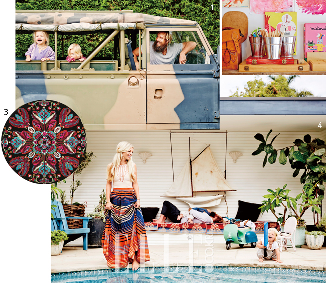 그렇다면 커머포드가 사는 이 비치 하우스에 담긴 이야기는 뭘까. “우리 집은 해변가에 좌초된 클래식한 난파선인데 때로는 아주 이상한 곳이지만 주로 평온한 공간이죠. 난 프랑스인이고 모던-보헤미언 스타일의 아이템을 모으는 컬렉터예요. 옛것과 새것 모두를 좋아하는 사람이고요.” 어쩌면 조금 이상하게 들릴지 모를 이 이야기는 커머포드가 얼마나 행복한 상상을 하며 사는 사람인지 짐작할 수 있는 대목이기도 하다. 커머포드 가족은 주로 이런 행복에 젖어 가족적인 일상을 나고, 스타일리스트 가족 아니랄까봐 아빠와 엄마, 아이들이 모두 멋진 패션으로 무장한 모습과 스탠드업 패들보드, 서머 바캉스 같은 일상적인 에피소드 등을 블로그(captainandthegypsykid. com)에 공유하며 많은 이에게 호응을 얻고 있다. 이곳에 업데이트되는 가족사진들은 특유의 감성적인 무드도 있지만 일에 파묻혀 사는 일상이 아닌 행복을 추구하는 가족의 무브먼트가 담겨 있어 사람들에게 치유의 기운을 안긴다. “뭔가를 창조하는 작업은 우리 가족에게 가장 중요한 일이에요. 그중에서도 그림 그리기는 날마다 진행되는 아트 프로젝트죠.” 집 안 곳곳에 붙어 있는 셰리 커머포드 가족이 그린 그림들은 이 집을 보헤미언 하우스로 정의하는 데 꽤 큰 역할을 한다. 아이들의 손과 발을 스탬프처럼 찍어 완성하거나 신체의 일부분만 촬영한 가족사진들을 보면 자유분방한 아이디어가 돋보인다.