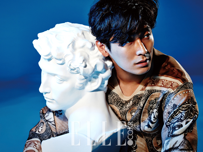 그리스 신화에서 영감을 얻은 듯 조각상 프린트가 그려져 있어 조각같은 주지훈의 얼굴을 돋보이게 해주는 톱은 Dolce & Gabbana.