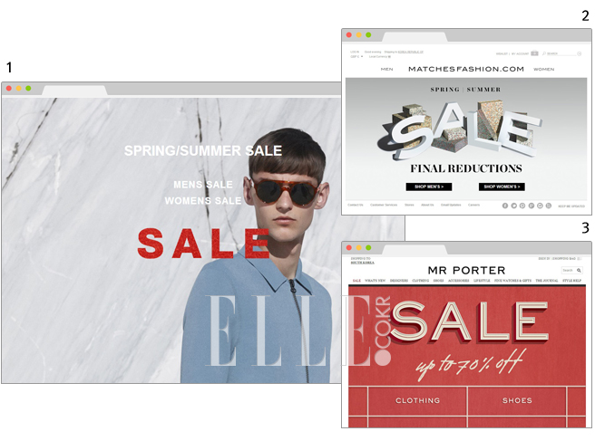 남자 온라인 쇼핑몰은 비교적 잘 되어 있는 곳이 몇 군데 안 되 찾는 곳이 한정적이다. 그 중 가장 유명한, 네타포르테의 남자 버전인 ‘mrporter.com’. 세일 기간에 70%이상 할인률이 적용되어 평소 가격압박으로 구입하지 못한걸 지를 수 있다. 사이즈가 빠른 시일 내에 품절되므로 미리 장바구니에 담아놨다 세일 시작 동시에 바로 결제하는 것이 관건. (미리 등록해 두면 세일 시작을 메일로 알려주므로) 심지어 한국은 무료 배송! 그리고 이곳은 단순히 쇼핑만 하는 공간이 아니라 스트리트 사진, 이슈 동영상, 트렌드 등 핫 한 소식을 접할 수 있어 쇼핑하지 않더라도 자주 찾게 된다. 또 이탈리아 베이스의 luisaviaroma.com 는 다른 사이트와 비교해 밀란 브랜드들이 상대적으로 저렴하고, 런던의 ‘Endclothing.co.uk’은 비교적 저렴한 스트리트와 캐주얼 브랜드의 셀렉션이 좋다. 특별한 메일링이나 정보를 잘(?) 제공해주진 않지만 워낙 인기 있는 희귀 아이템들이 많아 부지런히 서핑하는 방법밖에! 그 중에서도 내가 가장 사랑하는 ‘matchesfashion.com’! 지난 시즌 런던 패션 위크에 참여한 프레스에게 50%의 할인쿠폰을 선물했다. 세일 상품에 중복세일까지 맞볼 수 있다니, 러브 매치스!