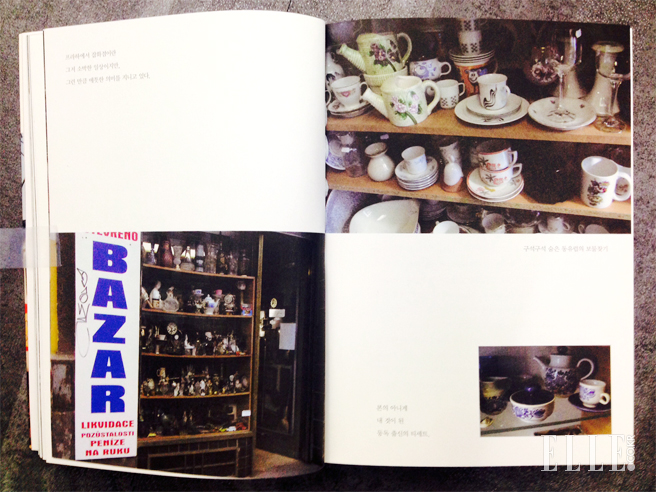 -프라하에서는 굳이 구시가지나 신시가지의 큰 거리 주변이 아니더라도 동네 곳곳에서 ‘Antikvariat’(헌책방), ‘Bazar’(잡화나 가구, 전기 등 각종 중고 생활용품 판매점)라는 간판을 볼 수 있다. (중략) ‘헌책방’은 그림책을 비롯해 다양한 종류의 헌책을 중심으로 화가들의 화집, 습작, 우표, 레코드뿐만 아니라 새 책들도 함께 갖추고 있다. ‘잡화점’은 중고 핸드폰이나 노트북 등을 팔기도 하지만 주로 그릇, 옷, 가구, 조명, 인형 등 각종 잡화들을 사고파는 곳들이 많다. 이 두 곳을 합쳐 ‘Antikvariat+ Bazar’ 형태로 운영하는 곳들도 많다. - ‘동유럽이란 이름의 어떤 정서’ 중에서