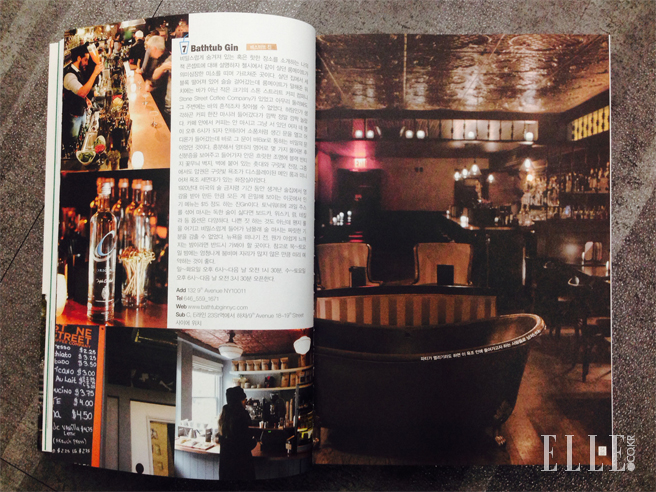 룸메이트가 말해준 위치에는 바가 아닌 작은 크기의 스톤 스트리트 커피 컴퍼니(Stone Street Coffee Company)가 있었고 아무리 둘러봐도 그 주변에는 바의 흔적조차 찾아볼 수 없었다. 허탕인가 생각하곤 커피 한잔 마시러 들어갔다가 깜짝 정말 깜짝 놀랐다. 카페 안에서 커피는 안 마시고 그냥 서 있던 여자 네 명이 오후 6시가 되자 인테리어 소품처럼 생긴 문을 열고 어디론가 들어갔는데 바로 그 문이 바(Bar)로 통하는 비밀의 문이었던 것이다. (중략) 1920년대 미국의 술 금지령 기간 동안 생겨난 술집에서 영감을 받아 만든 만큼 모든 게 은밀해 보이는 이곳에서 인기 메뉴는 $15 정도 하는 진이다. add 132 9th Avenue NY 10011, www.bathbubginnyc.com