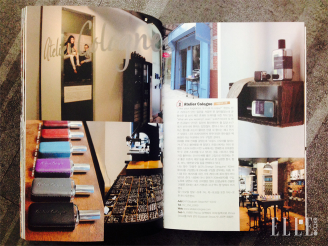 프랑스에서는 이미 유명한 스토어 브랜드지만 뉴욕에서는 맨해튼과 브루클린 딱 두 곳에 매장을 두고 있다는 것을. 스트러스 향을 좋아하는 오너의 배짱 좋은 고집으로 이곳에서는 주로 좋은 오렌지, 레몬 등을 베이스로 한 상큼한 향수, 향초, 비누, 에센셜 오일 등을 판매하고 있다. (중략) 200ml를 구입할 경우에는 이름, 이니셜 또는 메시지를 새긴 가죽 케이스에 30ml 향수까지 덤으로 준다. add 247 Elizabeth Street NY 10012, www.ateliercologne.com