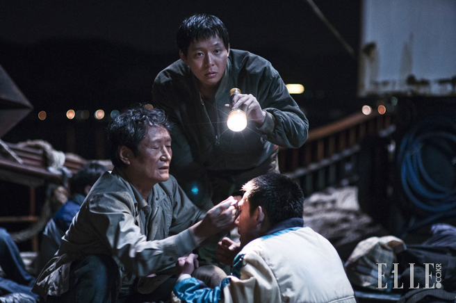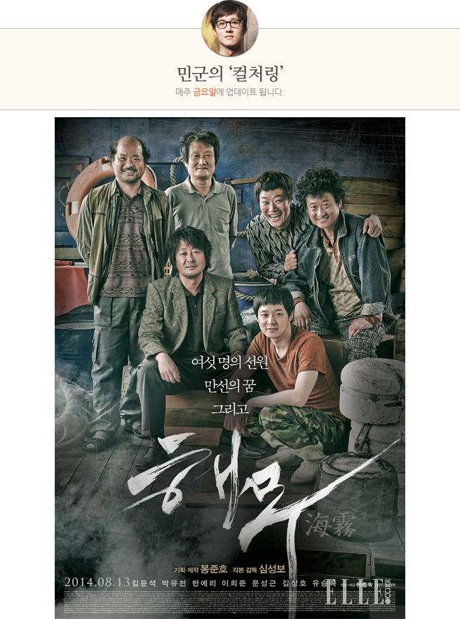 어쨌든 <해무>는 제목 그대로 ‘해무’ 속에 갇힌 선원들에 대한 이야기입니다. 물론 그 바다 위 안개가 <미스트>처럼 이 세상 것이 아닌 무언가로 인해 불거지는 위기를 소환하는 매개가 되는 건 아닙니다. 진짜 말 그대로 안개, 해무이지요. 해무는 그저 장르적 연막을 강화하게 위한 수단에 불과합니다. 중요한 건 그 해무 속에 놓인 한 척의 배 위에 있는 사람들이 무엇을 하느냐입니다. 그 해무 속에 갇히게 되는 선원들이 그 바다 위에서 단지 고기만 잡는 게 아닙니다. 평소에 하지 않던 일을 시도하게 되죠. 하지만 그 시도는 그들이 스스로 원해서 자청한 일이 아닙니다. 폐선 위기에 몰린 상황을 타계하고자 선장 홀로 독단적으로 결정을 내렸고, 그 상황에 수긍한 선원들이 불가피하게 수긍한 결과였던 것이죠. 그리고 그 불가피한 계획이 생각했던 것처럼 진행됐다면 <해무>라는 영화의 존재 이유가 없겠죠.