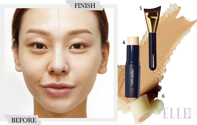 4 휴대가 간편한 스틱 타입의 파운데이션 으로 번들거림 없이 매끈하고 보송보송한 피부 결을 완성해 준다. UV 멀티 커버 스틱 SPF 50+/PA+++, 01호 아이보리, 2만5천원, 에스쁘아.