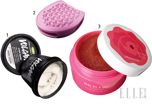 3 온열감이 느껴지는 스크럽은 몸의 냉기를 제거하고 혈액순환을 돕는다. 로즈 오일 앤 솔트 젤 스크럽, 2만5천원대, 마몽드.
