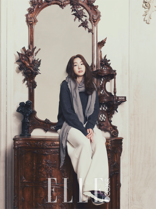 드디어 촬영 날, 약속된 시간에 정확히 맞춰 그녀가 도착했다. 정말 작은 얼굴, 흠 없이 완벽한 피부부터 눈에 들어왔다. ‘츄리닝’을 입고 올 거란 예상과는 달리 루스한 블랙 톱에 레깅스, 골드 스트랩의 플랫 샌들을 신은 모습! 그녀는 촬영 내내 웃음을 머금고 있었고, 촬영장에 있던 강아지들을 ‘우쭈쭈’ 하는 데 정신이 팔려 있었으며, 12시가 넘자 칼같이 점심을 먹자고 했다! 이처럼 소탈하고 사랑스러운, 25세가 돼서야 비로소 삶의 여유를 찾은 듯한 김연아와 <엘르>가 나눈 대화를 공개한다.