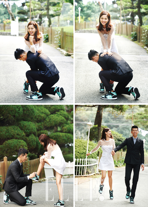 정혜영이 입은 미니 원피스는 Blumarine. 션이 입은 수트는 Cymbidium. 슈즈는 Nike.