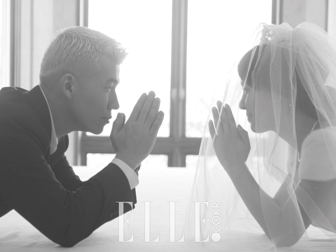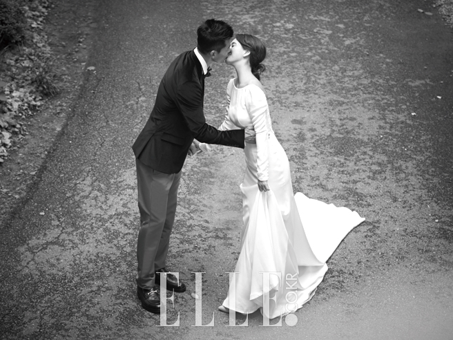 정혜영이 입은 화이트 드레스는 Leeseungjin. 션이 입은 수트와 슈즈는 Gucci.