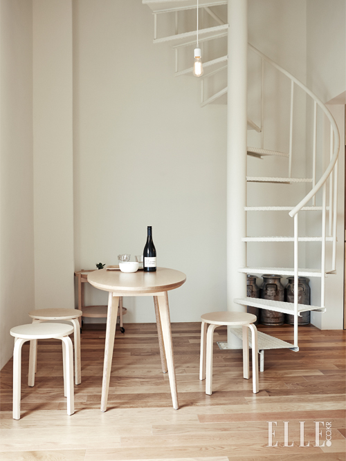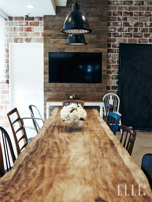 하루 일과를 시작하는 습관 긴 통나무 테이블이 놓인 쇼룸 겸 카페테리아에서의 아침 시간을 사랑한다. 출근하면 버릇처럼 이곳에 들러 에스프레소를 내려 마시고 하루를 준비한다. 오전엔 이메일 체크와 같은 사무실 업무를 처리하고 오후엔 대체로 매장을 돈다.