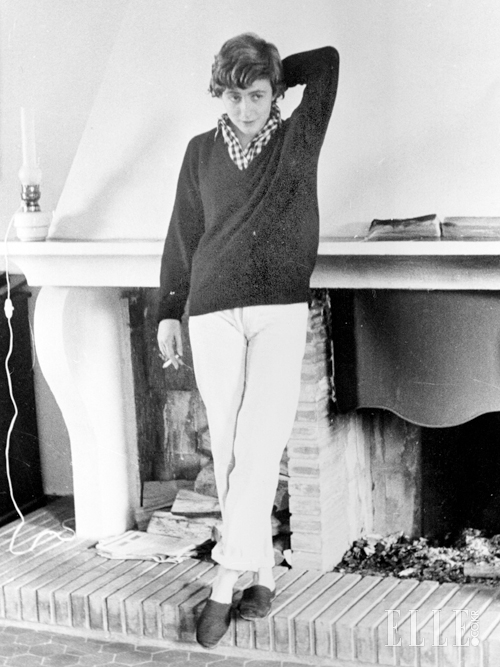 미소년처럼 곱슬거리는 짧은 머리, 불꽃 같은 열정과 장난기가 어린 눈빛, 손가락에선 늘 떠날 줄 모르는 시가렛 그리고 코지한 니트 스웨터. 1954년 <슬픔이여 안녕>이 베스트셀러가 되면서 프랑스 문단의 집중 조명을 받기 시작한 작가 프랑수아 사강이 프랑스 남부 생트로페즈의 별장에서 편안한 브이넥 스웨터와 깅엄체크 셔츠를 레이어드하고 화이트 팬츠에 슬립온 차림의 전형적인 남부 프렌치 스타일로 그녀에게 쏟아지는 스포트라이트 앞에서 어색하다는 듯 카메라 시선을 피한다. 아마도 같은 해 발표한 소설 <어떤 미소> 집필이 한창이었을 듯.