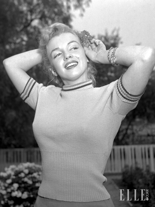 marilyn monroe 1950베벌리 힐즈의 에이전트 조니 하이드의 저택 뜰에서 캘리포니아에 쏟아지는 5월의 햇살을 잔뜩 머금고 있는 마릴린 먼로. 그녀의 모습을 보면 때론 니트 스웨터가 시스루 란제리 못지않게 육감적이고 섹시하다는 걸 느끼게 된다. 여기 그녀가 입은, 가슴선 바로 아래부터 잘록하게 허리라인으로 조여지는 밴딩 디자인의 니트 스웨터라면 더더욱 말이다. 굳이 가슴선을 노출하는 등 속살을 드러내지 않아도, 자신감 있는 애티튜드와 사랑스러운 미소, 육감적인 몸짓이 소녀들이 입을 법한 프레피 스타일 니트웨어도 란제리만큼이나 섹시한 아이템이 된다.