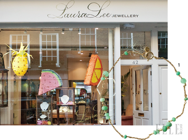 1 미니 비즈들이 달린 골드 브레이슬렛은 160파운드, Laura Lee Jewellery.