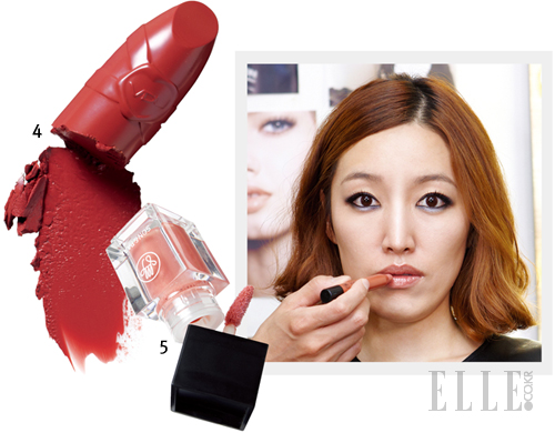 입술에는 크림처럼 부드럽게 발리는 베이지 컬러의 립스틱을 골랐다. 입술이 도톰한 덕에 약간만 혈색을 줘도 섹시해 보인다. 바르는 방법은 컬러가 번지거나 지워져도 상관없다는 듯 무심하게 바를 것. 입술 중앙부터 톡톡 두드려가며 발라 컬러가 입술에 자연스럽게 스며들도록 한다.
