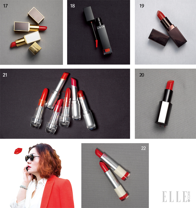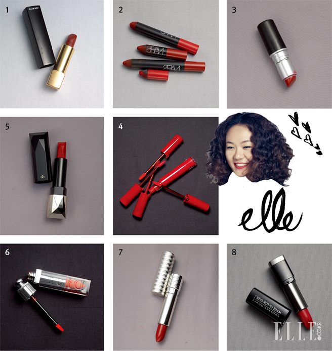 스무 살 때부터 실험 정신(?)이 강했던 나는 일명 갈치색 밍크 브라운에서 누드 핑크까지 유행한다는 립 컬러는 다 섭렵했다. 그러다 편집장이 되고 나서 문득 수지 멘키스의 올린 앞머리처럼 나에게도 뭔가 시그너처가 필요하다는 생각이 들기 시작했다. 레드 립이 이렇게까지 대세가 되기 전, 그저 내 빨강 곱슬머리랑은 괜찮겠다는 생각으로 바르기 시작한 레드 립은 이제 줄리아 편집장의 얼굴을 기억하게 하는 표식이 됐다. 어느새 나는 삼손처럼 이 ‘새빨간 아가들’ 없이는 힘을 낼 수 없게 된 것 같다. 줄리아도 빨개요….