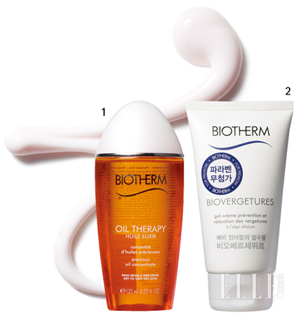 2 파라벤이 함유되지 않은 예비 엄마 크림. 가슴, 배, 허벅지 등에 하루 2회씩 4개월 이상 사용. 이 크림과 오일을 3:1 비율로 섞어 사용하면 효과가 배가 된다. 150ml 5만9천원대, 모두 비오템.
