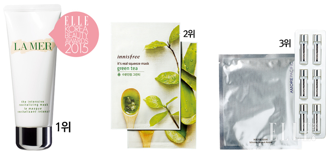1위 인텐시브 리바이탈라이징 마스크, 20만원대, 라 메르. 지친 피부를 8분 만에 회복시켜 주는 일명 ‘8분 에너지 마스크’로 출시와 동시에 베스트셀러로 등극했다. 지압 마사지와 함께 8분간 흡수시킨 후 닦아내지 않는 것이 특징. 꾸준히 쓰면 피부 볼륨이 살아나는 플럼핑 효과까지!