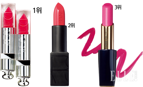 3위 퓨어 칼라 엔비 샤인 립스틱, 3만9천원, 에스티 로더. 화사한 피부 표현을 선호하는 아시아 여성들을 위해 개발된 16가지 컬러의 립스틱으로 노란빛을 중화하는 블루 피그먼트를 함유했다. 특히 ‘아리랑 핑크’ 컬러는 핑크를 사랑하는 한국 여성들의 취향을 적극 반영, 한국에만 단독 출시돼 관심을 모았다.