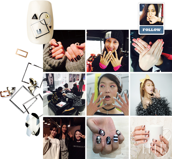 ● 서울패션위크에서도 활동 중인 그녀. 올해부터 스티브 J & 요니 P 쇼에 이어 맥앤로건 쇼의 네일도 담당했다. 익살스런 포즈를 취해준 모델 강소영(@iamsoyoung33)과 이성경(@heybiblee).