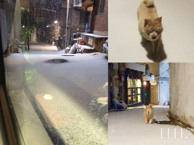 올겨울 첫눈이 내린 날 크림이와 산책을 하러 나갔다. 크림이는 어릴 때 눈을 정말 좋아했다. ‘좋아서 미친다’는 말이 실감날 정도였다. 하지만 언젠가부터 예전 같지 않다. 눈을 봐도 담담하다. 사실 나는 눈길에서 사고를 당한 기억 때문에 눈을 싫어했다. 그런데 크림이 덕분인지 예전만큼 눈이 싫진 않다. 어쩌면 크림이도 내가 눈을 싫어하는 걸 알고 나를 배려하는 게 아닐까. 그렇게 서로 조금씩 닮아가는 것 같다. 요즘은 가끔 눈이 오면 기분 좀 낼까 싶어서 함께 산책을 나간다. 크림이의 속은 아직도 모르겠지만.