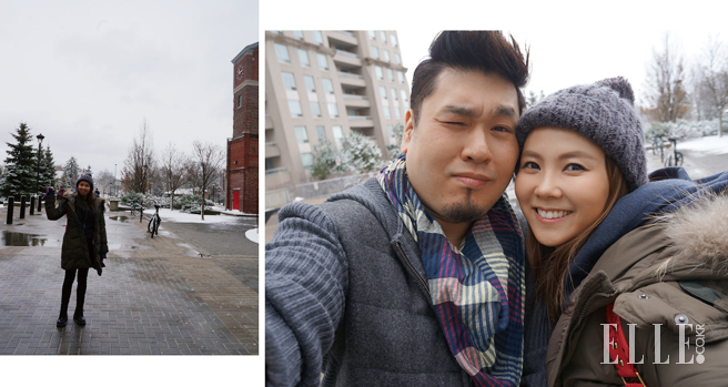 올해 4월에 남편의 고향인 캐나다를 찾았다. 4월인데도 밤새 눈이 내렸다. 그런데 다음 날 도로가 너무 말끔해서 놀랐다. 사실 캐나다에 도착하고 나서 몸이 썩 좋지 않았다. 걷기도 힘들 정도였다. 그런데 여자의 직감이랄까. 남편 몰래 약국에 가서 임신 테스트기를 사서 테스트해 보니 임신이었다! 남편의 고향인 토론토에 와서 임신 사실을 확인하니 기쁨이 더했다. 이 사진들은 바로 그 다음 날 찍은 것이다. 표정만 봐도 알겠지만 나나 남편이나 그토록 고대했던 아기 소식에 한없이 기뻤다. 이제 곧 세상에 나올 우리 딸이 너무 보고 싶다.