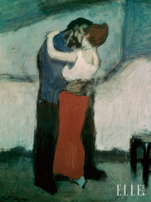 키스를 주제로 한 미술 작품은 셀 수 없이 많다. 정력적으로 작품 활동을 펼친 피카소 역시 여러 차례 화폭에 키스를 담았다. 말년에 완성한 남녀의 눈·코·입이 일그러진 <키스>(1969)가 제일 유명하지만 피카소 같지 않아서 더욱 끌리는 낯선 작품들도 있다. 스무 살의 피카소가 그린 것으로 추정되는 이 작품, 서로를 강렬하게 끌어안은 남녀에게서 눈을 뗄 수 없다. 여자의 입술을 덮친 남자는 악마처럼 보이기도 한다.