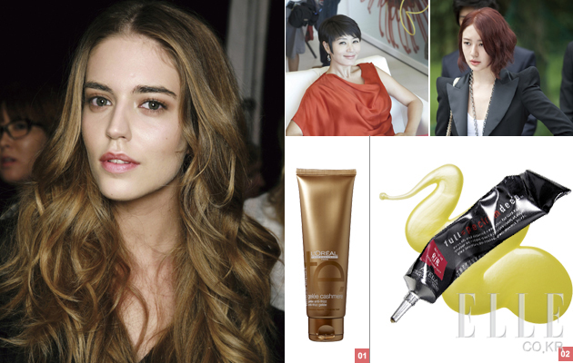 1 로레알 프로페셔날 파리 텍스처 엑스퍼트 젤리 캐시미어. 모발의 부스스함을 잡아주고 윤기와 부드러움을 더해주는 젤 타입 에센스. 3만원대. 2 아베다 풀 스펙트럼 딥. 캐스터 오일, 그린티, 호호바 오일 등 93% 천연 식물성 원료를 사용한 염색제.