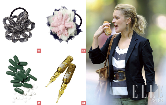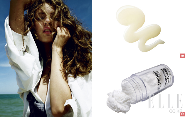 4 Wavemaker 자연스럽게 헝클어진, 하지만 윤기 있는 웨이브를 연출하려면? 런던의 헤어 스타일리스트 조나단 코넬리는 ‘하루 이상 샴푸하지 않은 모발’이 스타일링하기 가장 쉬운 상태라고 말한다. “모발의 텍스처가 살아 있는 상태이기 때문이죠.” 통이 넓은 컬링 아이언으로 헤어의 각 부분을 서로 다른 사이즈로 말아준 다음, 아직 따뜻한 상태의 웨이브를 루스하게 트위스트해(고정되도록 스프레이를 뿌리거나 무스를 바르면 더 좋다) 바비 핀으로 45분간 고정한다. 주이 디샤넬과 카렌 엘슨의 헤어 스타일리스트 미셸 피오나는 더 간단한 방법을 제안한다. “샴푸한 다음 15분간 헤어 드라이를 하고 루스한 시뇽 헤어로 트위스트해 고정한 후 잠자리에 드세요, 아침에 일어나면 소프트한 컬이 눈앞에 펼쳐지죠!” 헤어 스타일리스트 유진 슐레이먼은 헤어 스프레이를 분사한 브러시로 사선으로 둥글게 말듯 빗질하면 훨씬 부드러워 보이고, 컬도 오래 지속된다고 조언한다. 흔히 웨이브 헤어는 빗질하지 않지만, 엉켰을 경우엔 풀어주어야 오히려 웨이브 컬이 되살아난다. 성긴 빗을 이용해 모발 중간부터 끝부분까지 빗은 다음 모근부터 중간 부분까지 부드럽게 빗어 내릴 것.