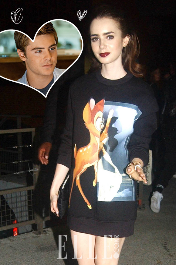 2014 S/S 지방시 컬렉션을 찾은 릴리 콜린스가 블랙 스웨트 셔츠에 버건디 립을 바르고 트렌디한 모습으로 등장해 눈길을 끌었다. 특히 릴리는 이날 평소보다 훨씬 생기 넘치고 상기된 모습이었는데 그 이유가 사랑에 빠져서 일 수도 있다는 의견이 나오고 있다. 바로 최근 헤어진 옛 남자 잭 에프론과 함께 영화를 보고 나오는 릴리의 모습이 팬들의 눈에 포착된 것. 두 사람은 주위의 시선을 의식하지 않은 채 자연스러운 데이트를 즐겼다는 후문. 앞서 지난 해에도 두 사람은 연인 사이를 부정해 오다 결국 가볍게 만난 사이었다고 인정한 바 있다. 애매한 관계의 두 사람은 쿨한 친구 사이일까 잊지 못해 다시 재회한 연인일까?