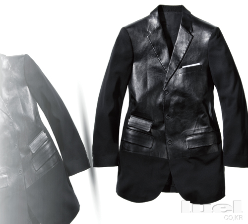 1 적절한 변화 웨어러블한 블랙 재킷은 몇 개 없다는 고정 관념을 멋지게 날려버린 닐 바렛의 아이디어. 모던하고 명확한 이미지의 블랙 재킷은 활용도는 높지만 미스터 루엘이 포용할 수 있는 디자인의 폭은 그리 넓지 않다. 라펠의 폭이나 소매 통을 너무 좁히면 모던한 느낌은 사라지고 지나치게 패셔너블해 보이고, 광택 소재를 사용하거나 포켓 디자인을 심하게 변형하면 명확한 느낌 보다는 조잡해 보이기 때문이다. 그런 이유로 모두들 ‘블랙 재킷은 평범한 디자인 하나면 충분하지 않나?’라고 생각한다. 하지만 이번 시즌 닐 바렛의 블랙 재킷은 그런 충분 조건을 무색하게 만든다. 디자인과 실루엣은 친숙하다. 하지만 라펠이나 단추를 만져보면 ‘어! 이게 뭐지?’하는 호기심이 발동한다. 날렵한 테일러링이 장기인 닐 바렛의 실력을 고스란히 담아 블랙 재킷을 만든 후, 블랙 레더 소재를 재킷 앞쪽에 코팅하듯 덧댄 것이 포인트다. 그 덕에 재킷 칼라의 앞쪽과 라펠 그리고 단추가 몸판에 붙어 떨어지지 않아 마치 가죽 재킷에 양각으로 새겨놓은 듯한 색다른 느낌을 주는 것이다. 레더 코팅 후에 행커 치프를 꽂을 수 있게 다듬고, 클래식한 포켓 디자인을 잘 살리는 등 변화의 적정선을 지킨 덕에 너무 과하다는 느낌은 들지 않는다. 충분히 입어볼 만 하겠다. 블랙 재킷 가격미정 닐 바렛 |